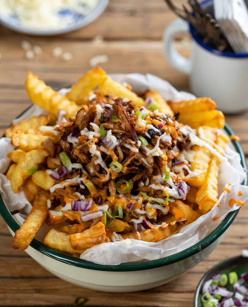 Draadjesvlees met een diepe smaak, langzaam bereid voor ultieme malsheid.